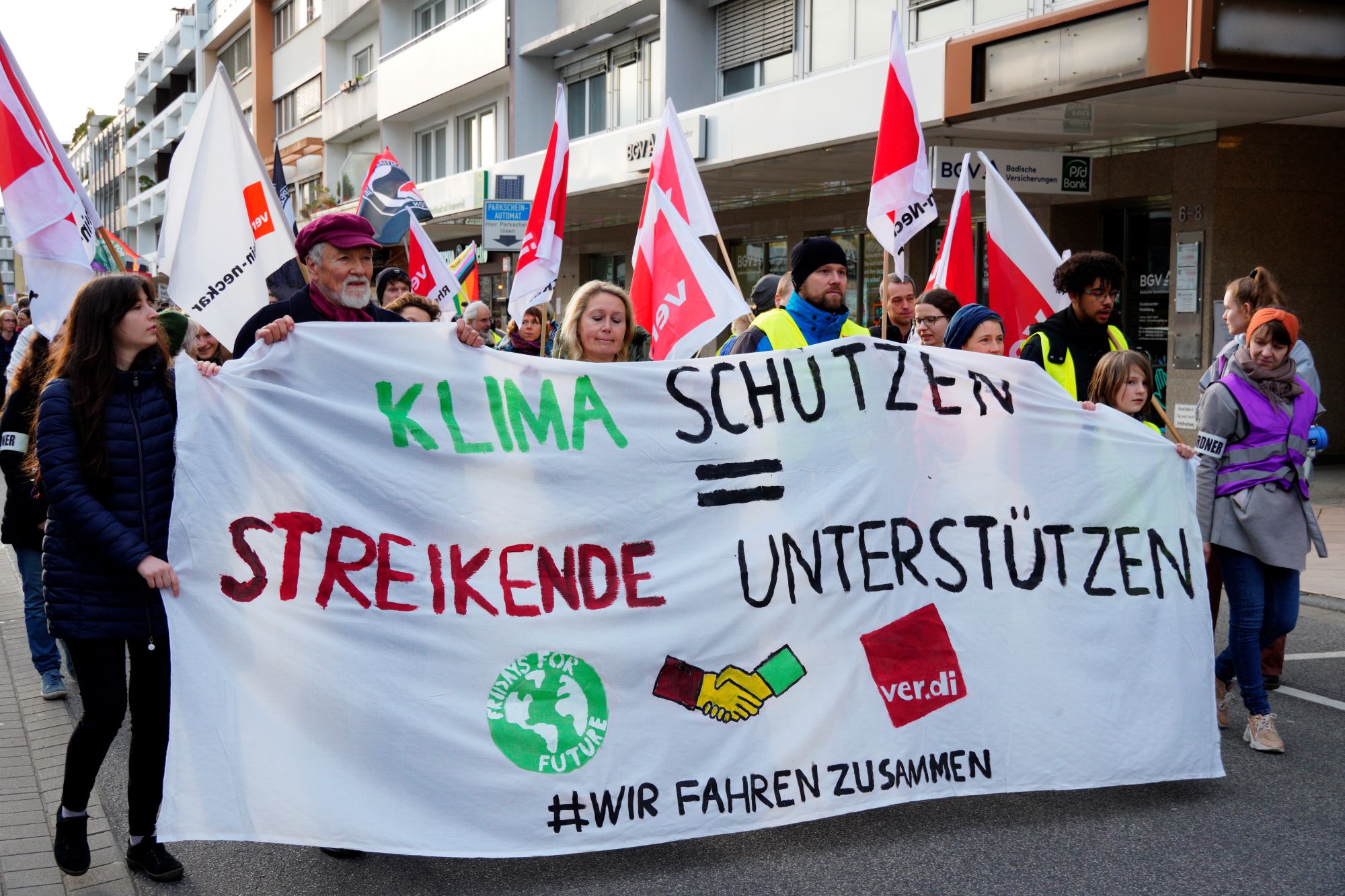 Tausende Beschäftigte aus 15 Bundesländern haben erstmals Seite an Seite mit Fridays for Future an einem Klimaprotest teilgenommen, um gemeinsam für gute Arbeitsbedingungen und eine nachhaltige Verkehrswende zu kämpfen. Fridays for Future wertet den gemeinsamen Aktionstag mit ver.di als großen Erfolg.